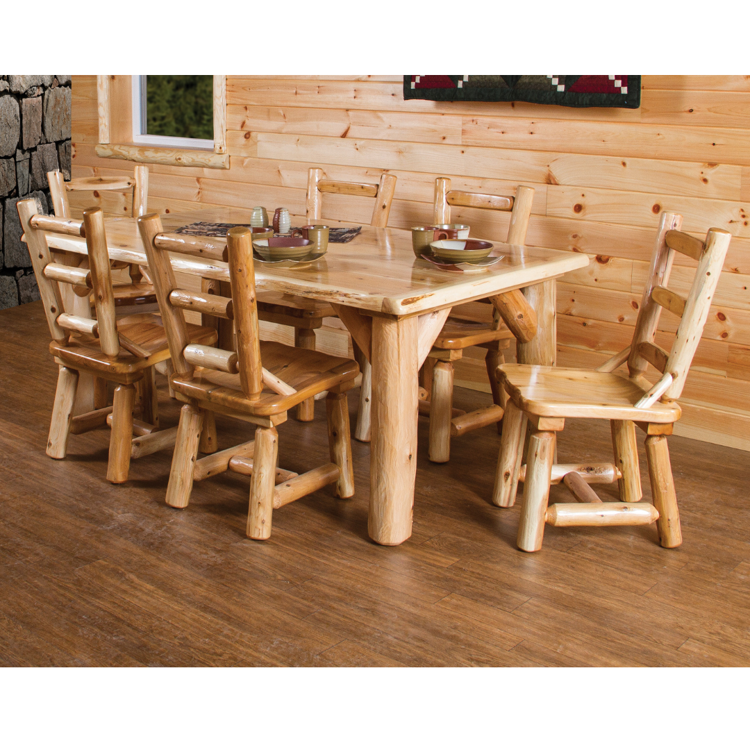 Finish off your dining area by adding optional solid cedar Captain’s chairs or ladderback log chairs – solid wood or upholstered (see thumbnail photos above).