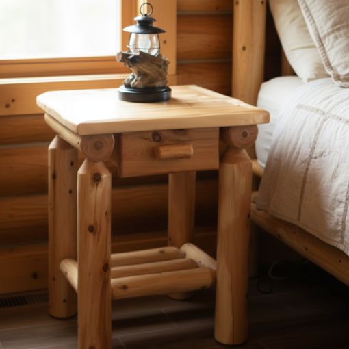 Wildwood Rustics White Cedar Log Nightstand/End Table – 1 Drawer