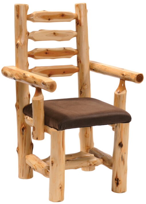 Consider these versatile upholstered log chairs which can be used with any of the Fireside Lodge Rustic dining tables, as an office desk or extra seating in the bedroom. These log arm chairs offer a cedar ladder back and upholstered seats for extra comfort.
