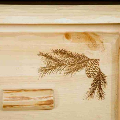 Other options include your choice of clear lacquer finish or “Honey Pine” finish, and laser engraving on the top 2 drawers (See “Additional Images” thumbnails above for samples).