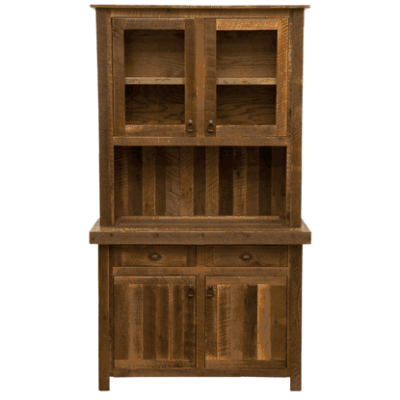 – Optional ARTISAN Top – it is a natural (unplanned) rustic looking top made of solid oak barnwood which retains the original character marks from the late 1800’s. – Barnwood Buffet only