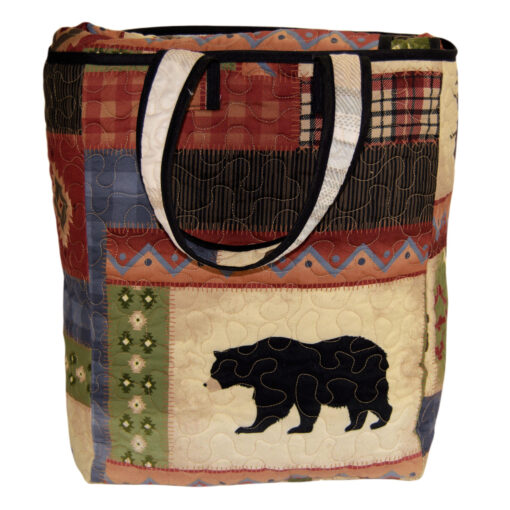 Forest Grove from Your Lifestyle by Donna Sharp is a rustic bedding ensemble featuring a series of wildlife and cabin motifs framed inside a patchwork of plaid, gingham and geometric patterns. Colors include deep red, chestnut, golden brown, olive green, tan, parchment and denim blue. The reverse features an all-over large plaid in peaceful coordinating colors. Set includes a quilt and 2 shams (Twin has 1 sham) and comes in a FREE tote bag! Easy care fabric. Decorative accessories sold separately.