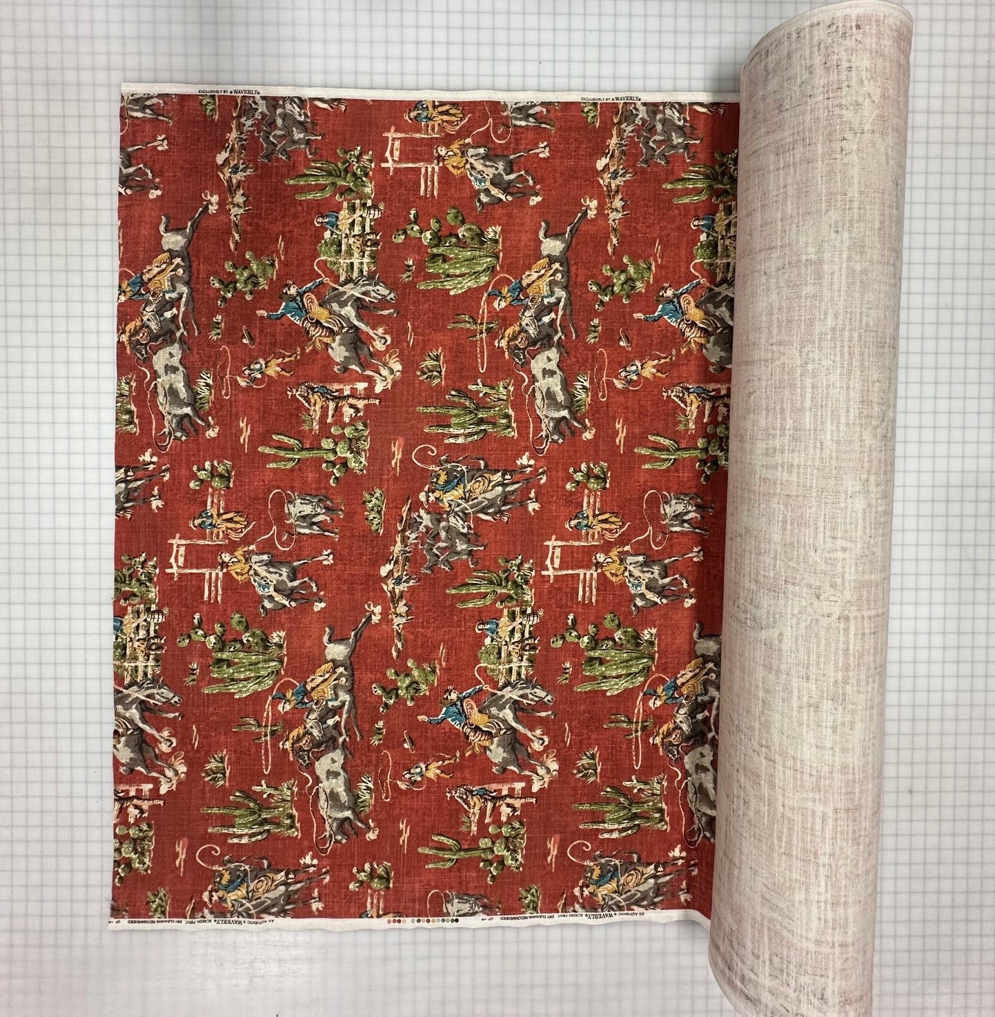 Ridin’ & Ropin’-01 is a Grade 30 fabric and is sold by the yard and is also available on Fireside Lodge upholstered products as a Upgrade Fabric.