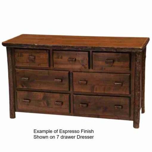 This beautiful hickory log dresser offers plenty of storage space for all your clothing and can even be used in the dining room for your linens or in the den for toys, magazines, photo albums and more.