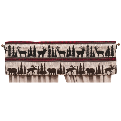 Window treatments can complete a room and tie everything together. This valance coordinates with the Lazy Lodge bed ensemble by Wooded River. Matching drape panels, sets, and tie backs are also available.