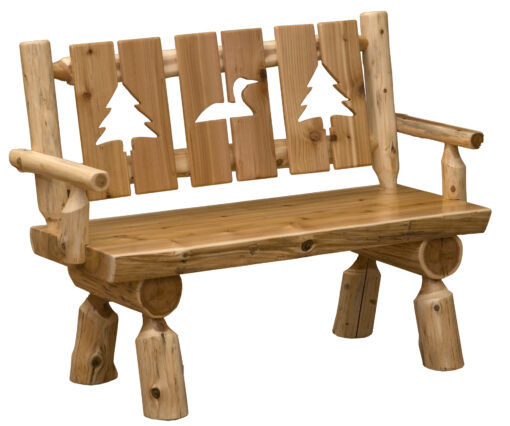 The Northern White Cedar logs are hand-peeled to accentuate their natural character and beauty. The log bench comes finished with a clear-coat catalyzed lacquer finish for extra durability.