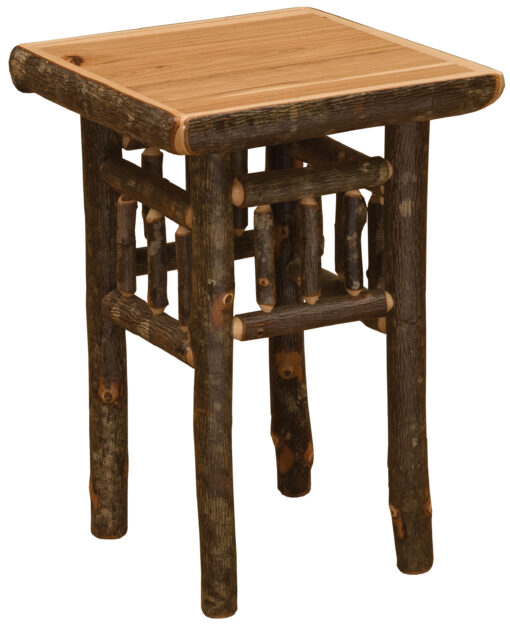 This handcrafted, one-of-a-kine Hickory log nightstand is simple yet elegant. Choose from 4 wood finished. See “Additional Images” thumbnails above for the finish options on this piece of rustic log furniture.