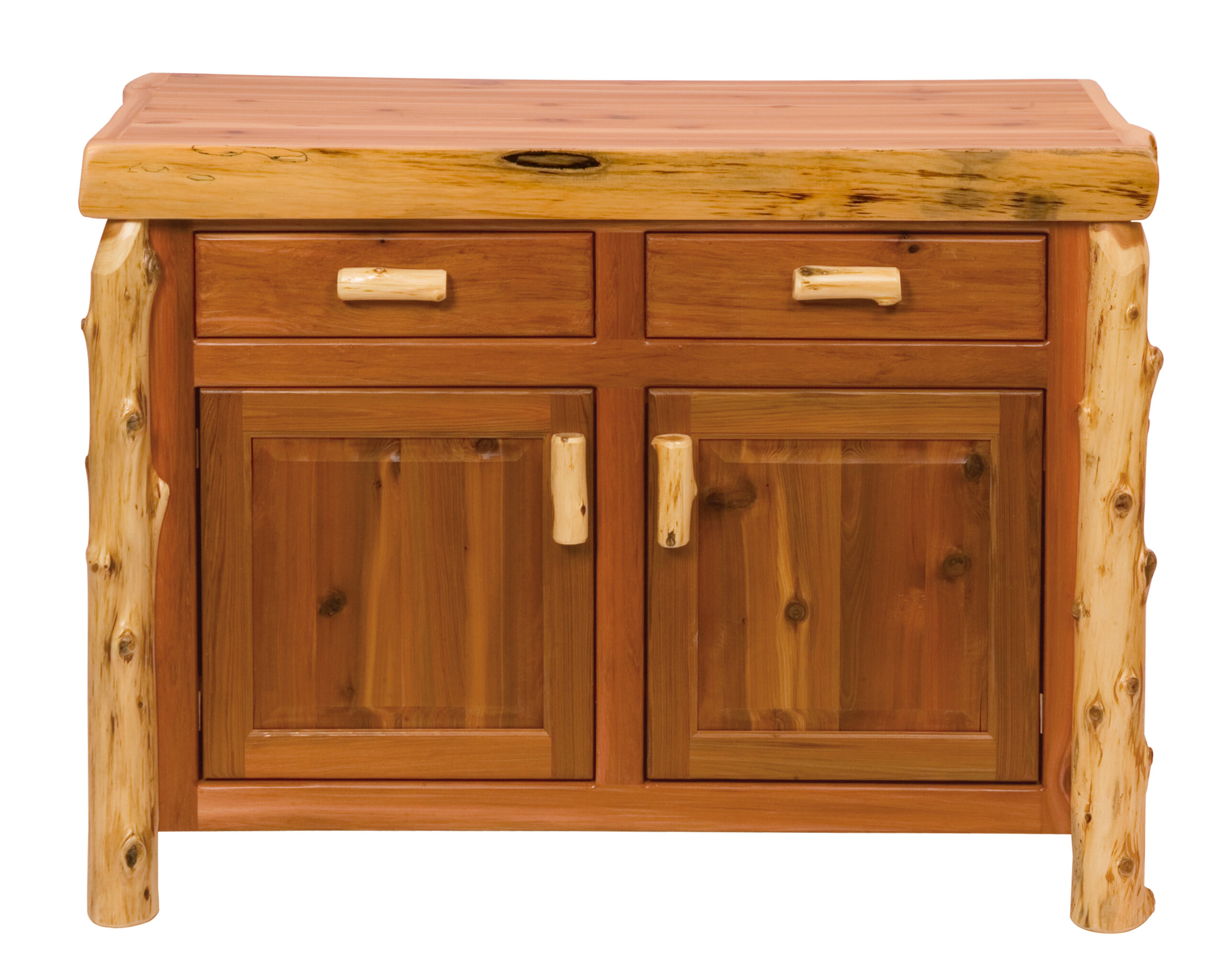 This log buffet is coated with clear-coat catalyzed lacquer for extra durability. The Northern White Cedar logs are hand-peeled to accentuate their natural character and beauty.
