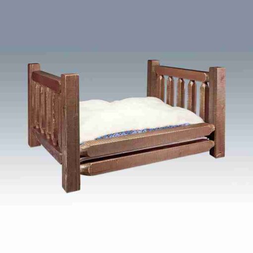 This rustic Amish pet bed is made for larger dogs who need comfortable sleeping quarters in your cabin home or mountain lodge. A plush mattress with fleece lining specifically made for pets is included.