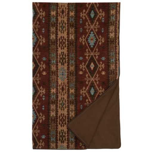 Warm, rich inviting: the Mountain Sierra collection incorporates chocolatey browns, deep wine colors, a touch of turquoise, and decorative conchos all highlighted by an intricate diamond pattern. This throw coordinates with the Mountain Sierra bed ensemble.