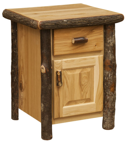 If you require a little additional storage in your rustic living room or bedroom, this enclosed hickory log end table may just be the ticket. This log end table has a smooth gliding full-extension drawer, and a door for bulky item storage. These hickory log end tables are practical not only for the living room but are a great addition in the hallway, den, bedroom or kitchen. Available in the Natural Hickory, Cognac, Cinnamon (as shown in photo) and Espresso finishes (see ‘Additional Images’ tab for photos).